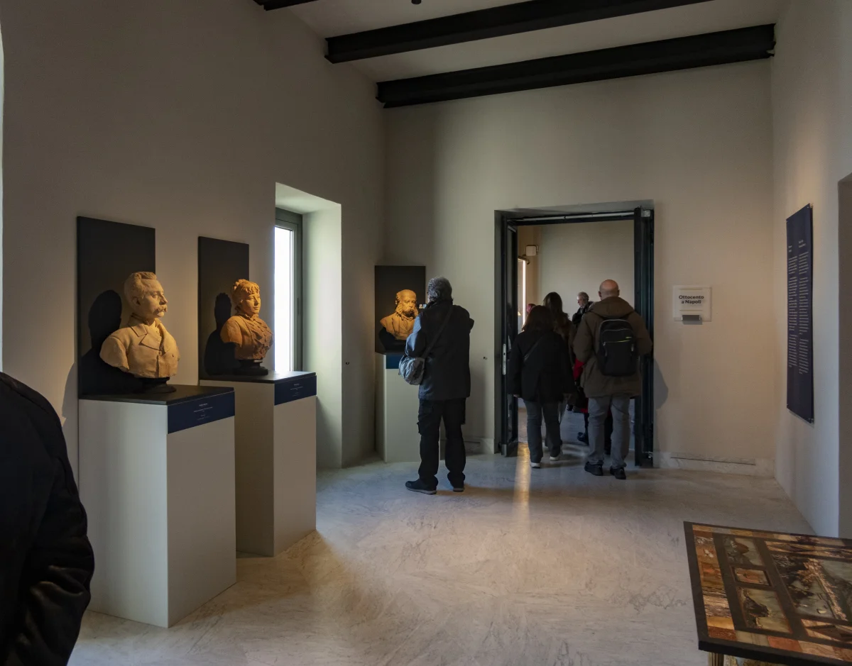 The new permanent exhibition on the first floor of the east wing of the Certosa di San Martino Museum in Naples officially opened to the public on December 22, 2025. The collection includes more than 200 works, including paintings, sculptures, and everyday objects, bringing to the public memories of 19th-century Naples, a century of great transformations for the city. Scuotto Allestimenti first restored the existing display cases, which had been abandoned for years, allowing the rooms to be redecorated with ceramics, coral, and glass. The new exhibition also included the construction of more than 50 linear meters of display walls for paintings, new mirrored display cases for the Biscuit porcelain, and painted iron structures to house numerous sculptures, including an entire room dedicated to the works of Vincenzo Gemito. Our company is delighted to accept this assignment, which contributes to restoring an important piece of history and priceless cultural heritage to our city. Below is a selection of significant photos from the opening day.