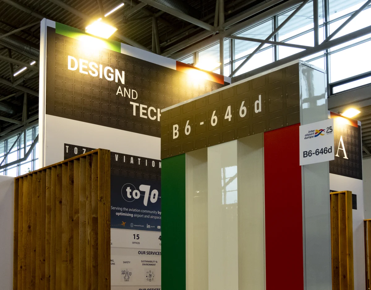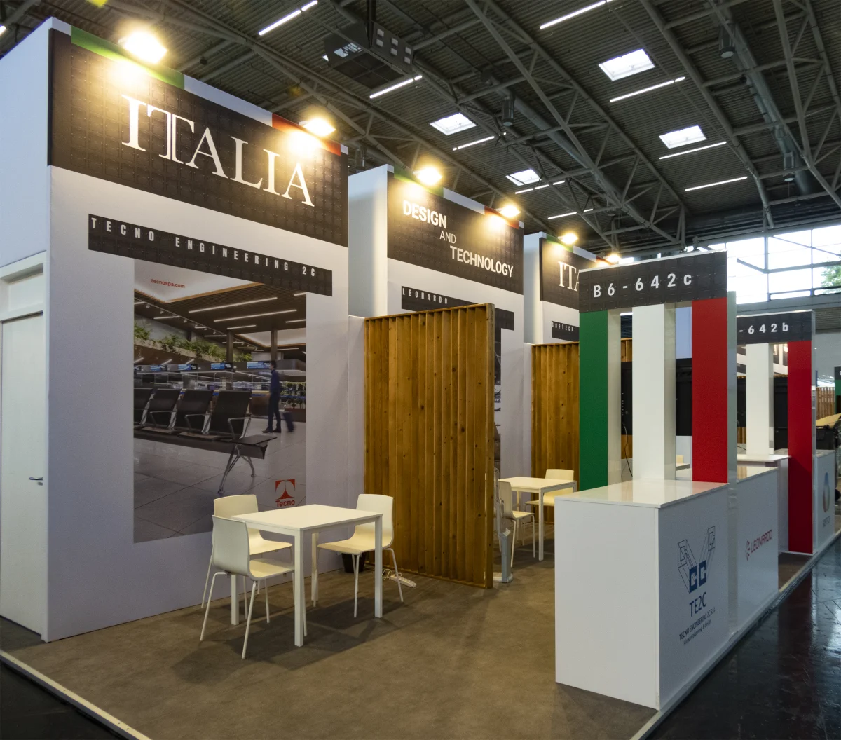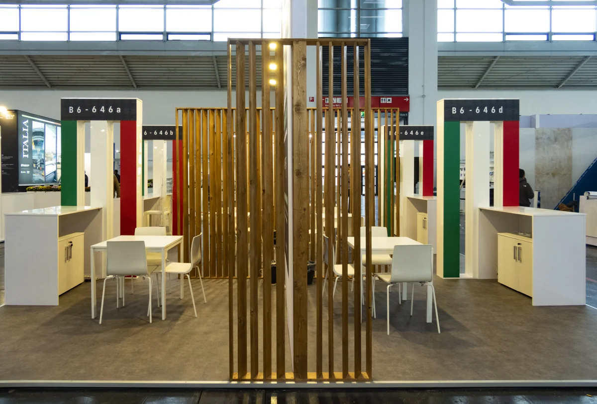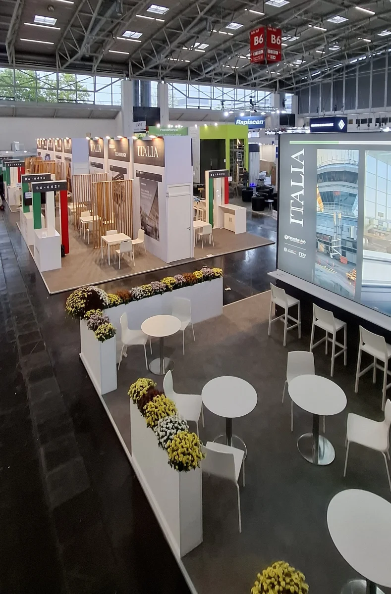 Scuotto Allestimenti flies to Munich! For "Inter Airport Europe 2025", the European airport technology trade fair, our company was chosen again by ICE, the Italian Trade Agency (Agenzia per l'Imprese per l'Italia), following our 2023 experience. The Italian pavilion, spanning approximately 300 square meters, consisted of multiple display islands, hosting more than 20 companies representing Italian excellence in airport innovation. The pavilion's distinctive features were its refined finishes, the choice of warm, natural materials, and attention to detail. Scuotto Allestimenti welcomed this new assignment, honoring the Made in Italy craftsmanship that sets us apart. Below is a selection of photos of the complete installation.