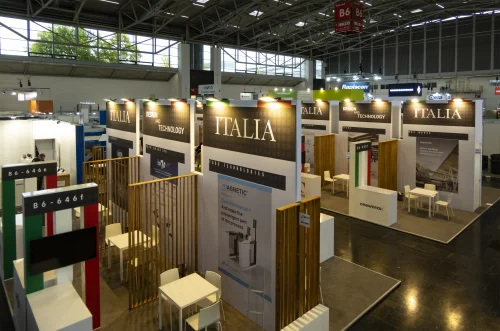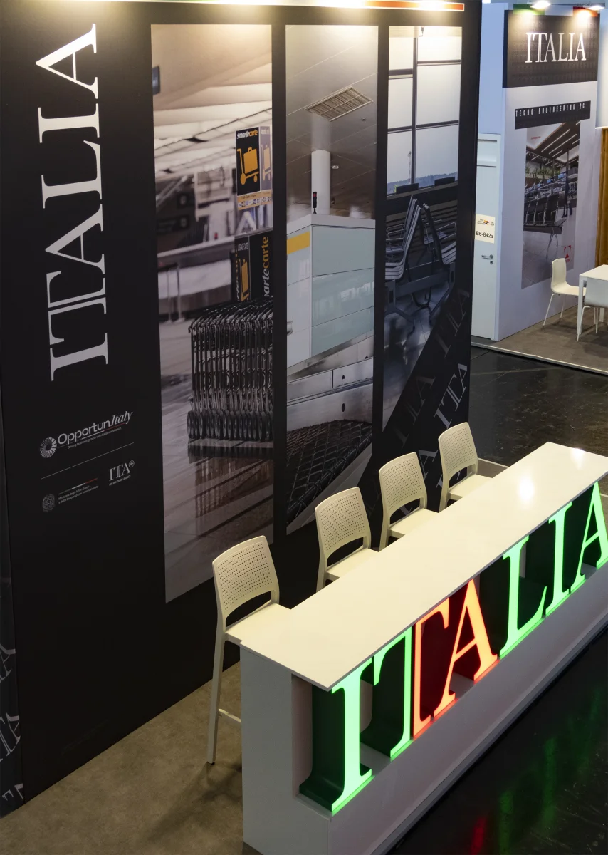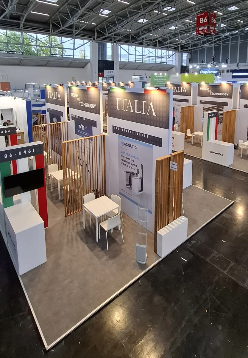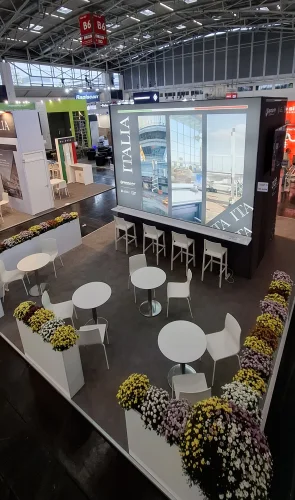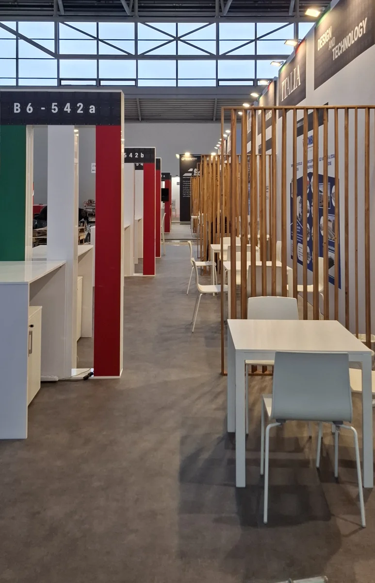 Scuotto Allestimenti flies to Munich! For "Inter Airport Europe 2025", the European airport technology trade fair, our company was chosen again by ICE, the Italian Trade Agency (Agenzia per l'Imprese per l'Italia), following our 2023 experience. The Italian pavilion, spanning approximately 300 square meters, consisted of multiple display islands, hosting more than 20 companies representing Italian excellence in airport innovation. The pavilion's distinctive features were its refined finishes, the choice of warm, natural materials, and attention to detail. Scuotto Allestimenti welcomed this new assignment, honoring the Made in Italy craftsmanship that sets us apart. Below is a selection of photos of the complete installation.